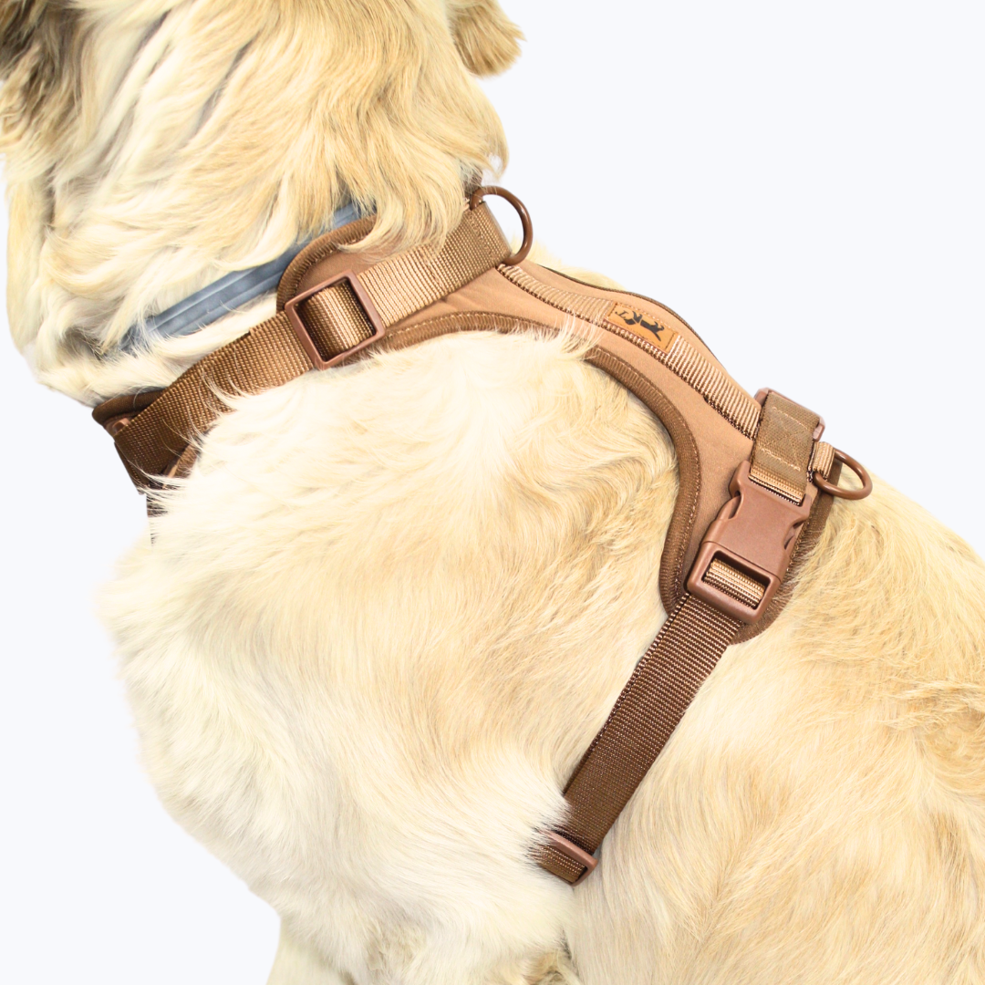 El arnés marrón es muy resistente, ideal para explorar nuevos caminos. Mi perro y yo hemos recorrido muchos y estamos encantados con su rendimiento.