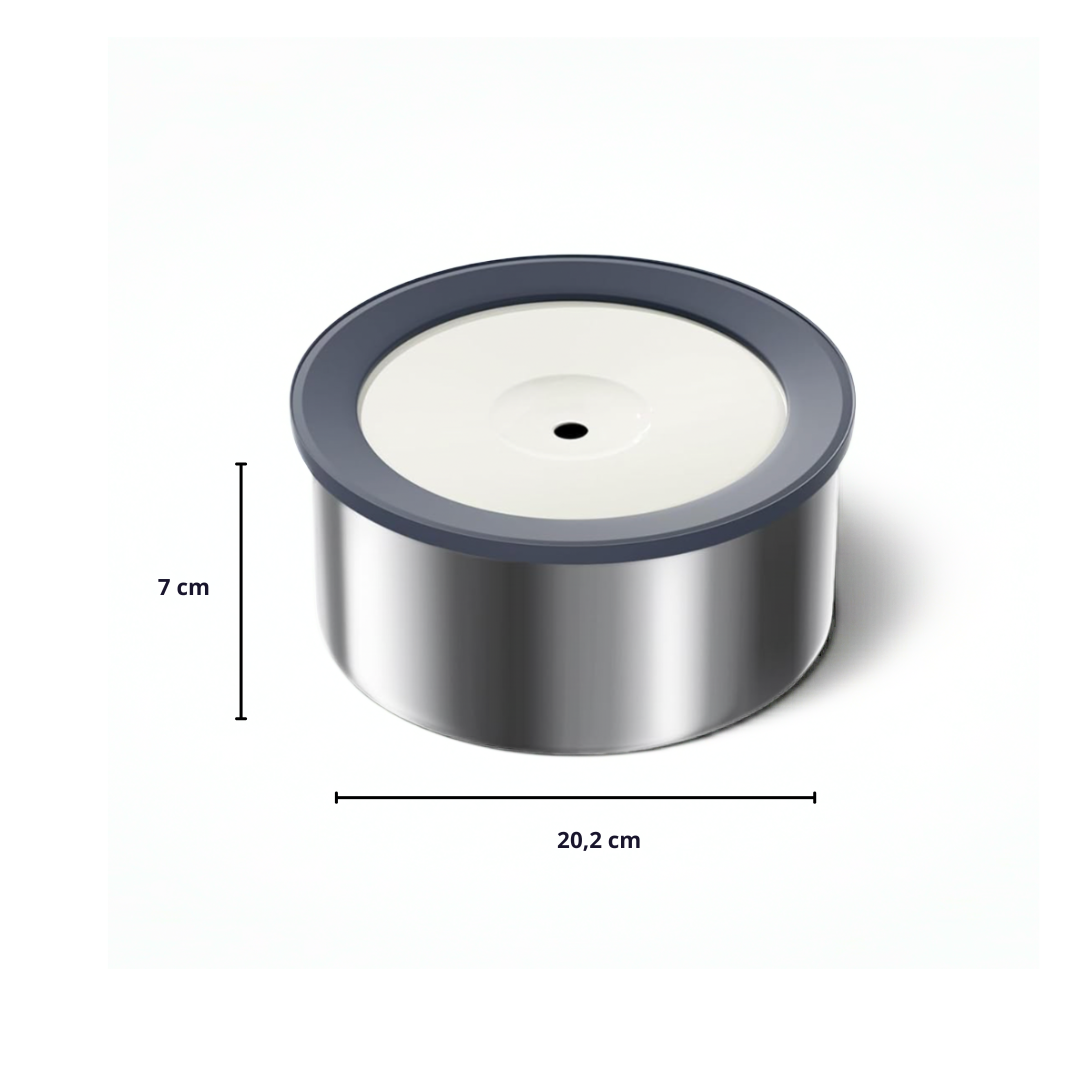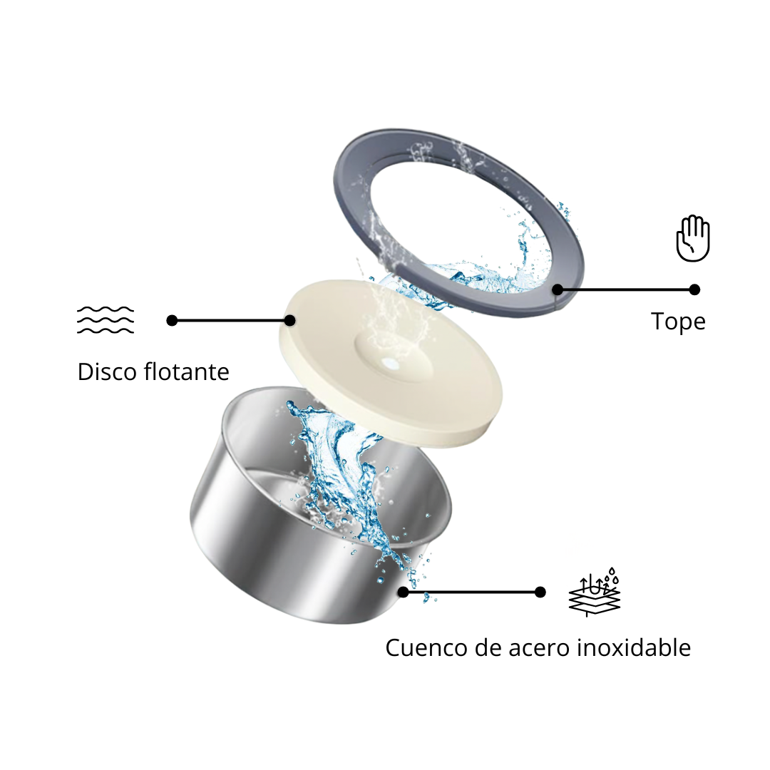 - Diseño antisalpicaduras y antigoteo: bordes elevados + placa flotante que reduce la velocidad y fuerza del agua al beber.