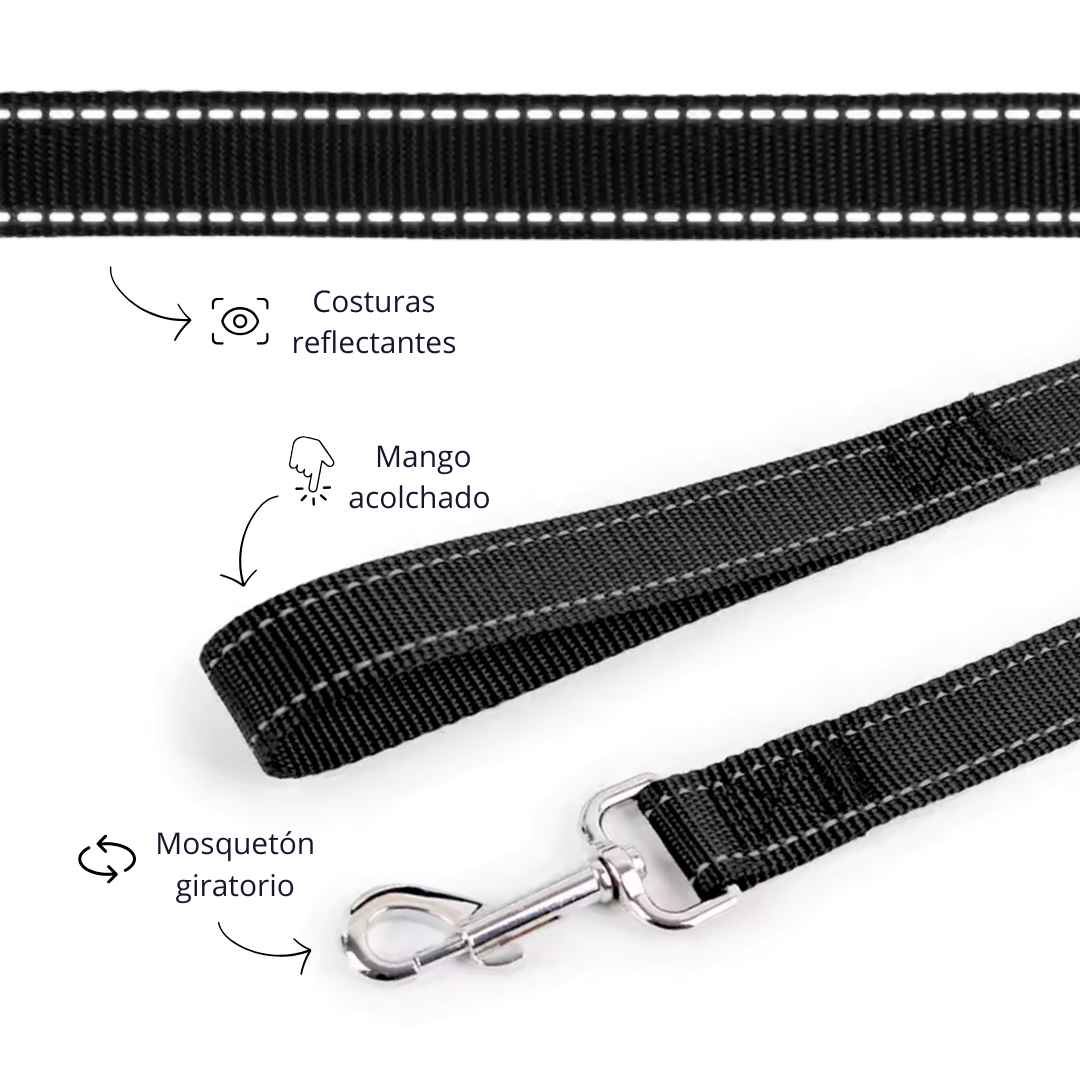 Diseñada para dueños exigentes y perros de todas las razas, nuestra correa negra de nylon combina durabilidad, seguridad y comodidad. Perfecta para paseos diarios, entrenamientos y aventuras al aire libre, esta correa te ofrece un control óptimo sin comprometer la libertad de tu perro.